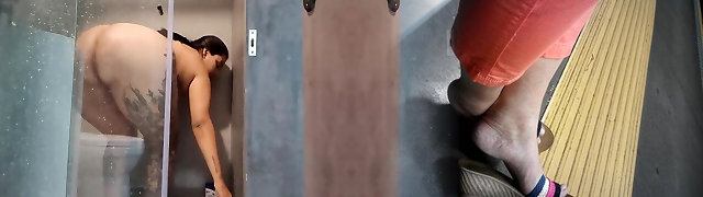 Enorme Chica Plus-size Bai Ndo En La Ducha Camara Oculta Ten Min