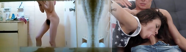 Son stags on mom when she's in the bathroom, then pounds her