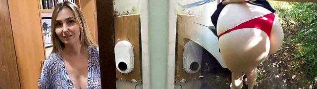 Dude gropes big ass nymph in tight shorts