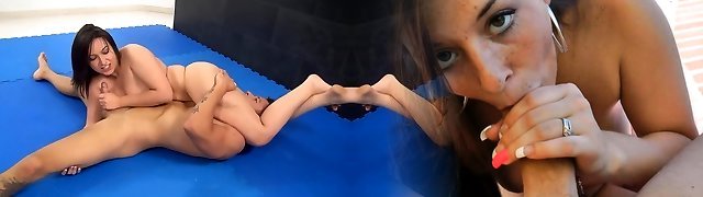 Busty London Rose Nude Wrestling A Fellow Poked On The Mats And Sucking That Cock - Evolved Fights