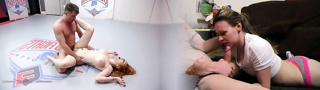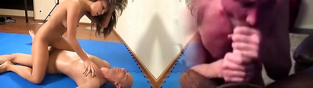Brandi Mae mixed nude wrestling struggle vs Masturbate Friday sucking his cock