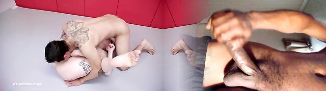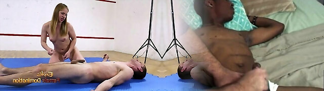 Wrestling Struggle As Bella Rossi Dominates Marcelo Jerking Him Off Then Pegging